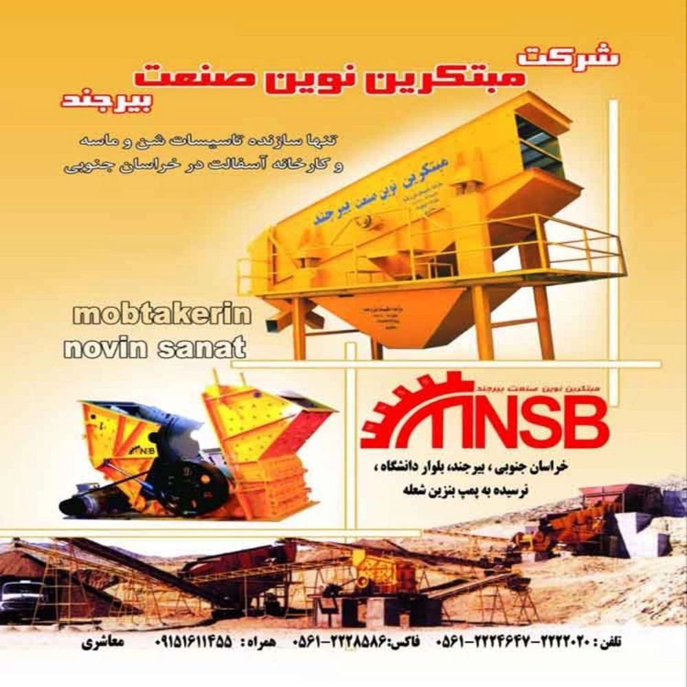 شرکت مبتکرین نوین صنعت بیرجند در سال ۱۳۷۹ ثبت و مدت ۶ سال در بخش تولید پمپهای صنعتی شروع بکار کرد و از سال ۱۳۸۴ در زمینه ساخت دستگاههای خردایش سنگ معدنی و شن و ماسه و کارخانه آسفالت در خراسان جنوبی شروع به فعالیت نموده که اولین و تنها سازنده دستگاه در شرق کشور میباشد و در طی این سالها پروژههای زیادی را انجام و به بهره برداری رسانده از جمله آن ....